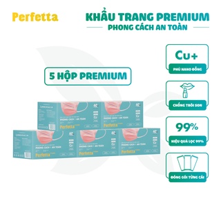 Combo 5 hộp khẩu trang y tế 3 lớp PERFETTA Premium cao cấp hai thanh mũi miệng phủ Nano đồng (40 cái/hộp)