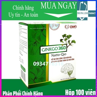 ✅ Viên uống tăng tuần hoàn não, GINKGO 360 NATTO Q10 GINIC, Hộp 100 viên