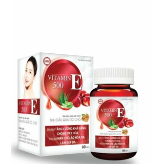 Viên uống đẹp da vitamin E 500 Tinh Dầu Quả Óc Chó Hoa Anh Thảo Giúp Đẹp Da Mờ Nám Cân Bằng Nội Tiết Tố Lọ 60 viên