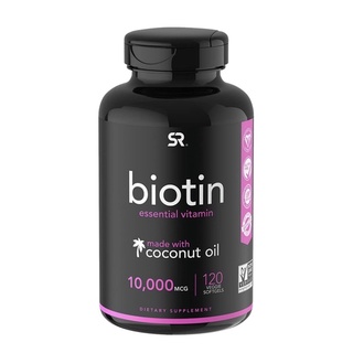 Viên uống thuần chay hữu cơ Biotin (10,000mcg) Sports Research SR Organic Coconut Oil 120 viên USA