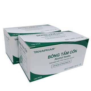 Hộp 100 miếng bông tẩm cồn sát trùng, hộp cồn khô