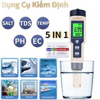 【Luôn Sẵn Hàng giao】Bút đo độ mặn của nước 5 trong 1 pH/TDS/EC/độ mặn/nhiệt độ kèm 3 gói pH chuẩn