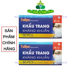 Khẩu trang y tế 4 lớp kháng khuẩn Tulips Xanh, Xám, Trắng - Hộp 50 cái