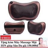 Gối mát-xa hồng ngoại Massage (Nâu) + tặng Máy mát xa mặt 3 trong 1 ( Hồng)