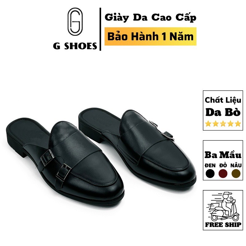 Giày Sục Nam Da Lì Kèm Khuy Cài, Độc Lạ Đai Thép Lạ.