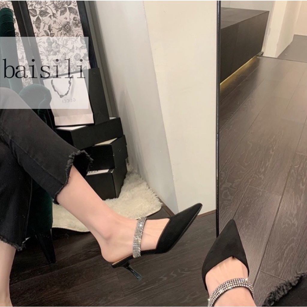 Giới thiệu SỤC NỮ BAISILI - DÉP BÍT MŨI GÓT NHỌN QUAI NGANG ĐÁ SANG CHẢNH - DÉP CAO GÓT THỜI TRANG - BD220931