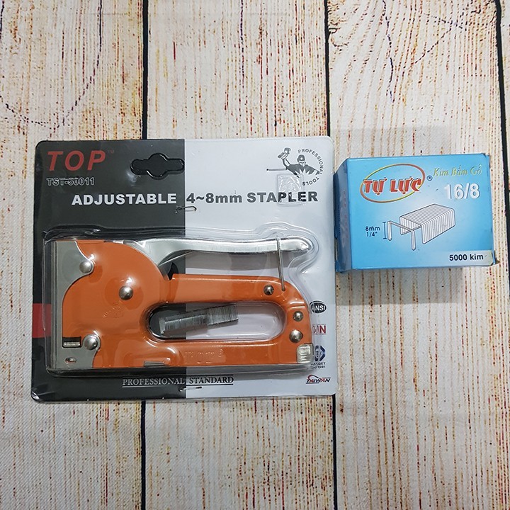 Điểm nổi bật Súng Bắn Kim tự lực hay còn gọi là kềm bấm kim. Sản phẩm dùng để bấm carton, ván, gỗ cố định, chắc chắn. -Súng bắn dùng cho loại đinh ghim: 4 – 8mm. đi kèm là 2 hộp đinh 16/8 - 1000 ghim Các tính năng nổi bật