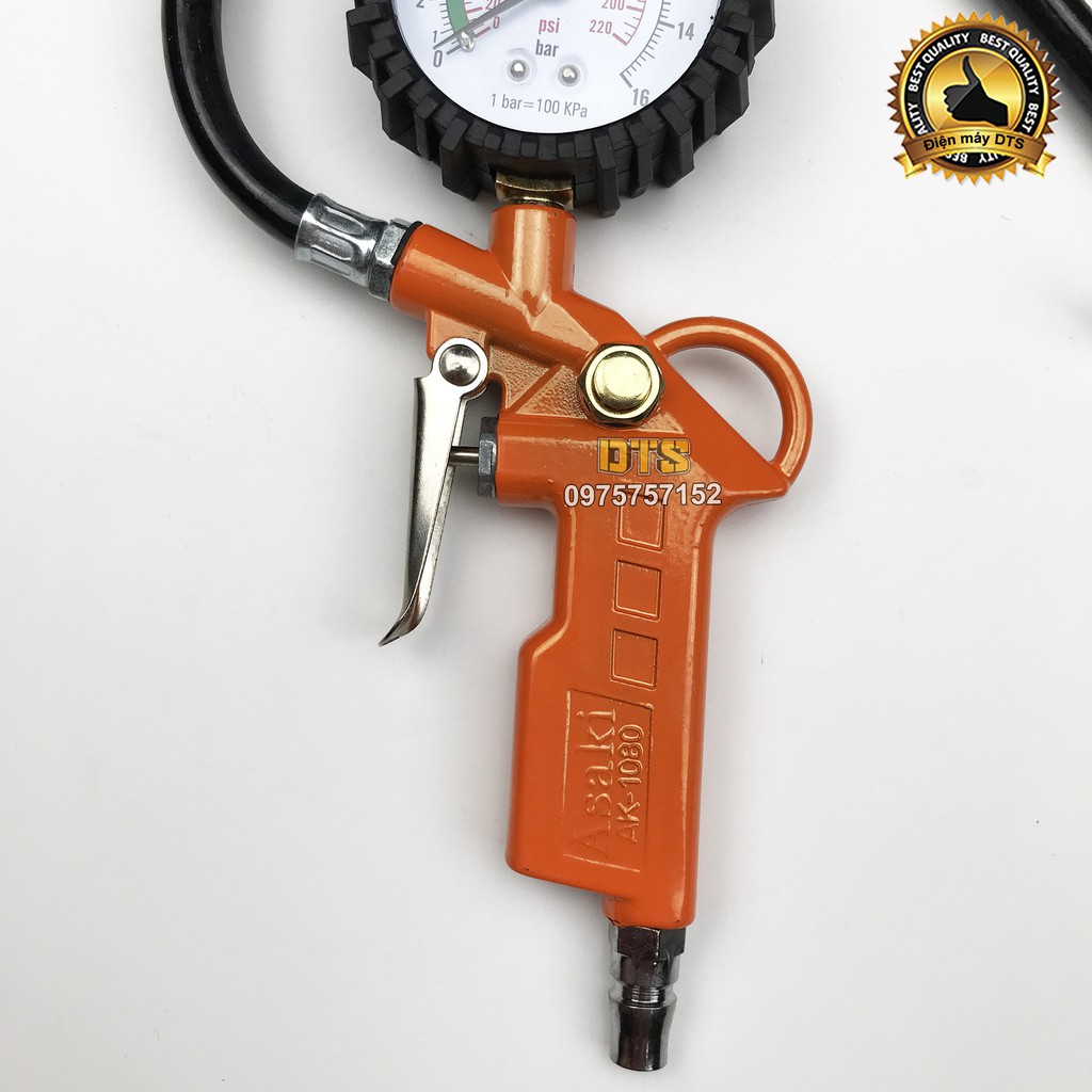 Dụng cụ và thiết bị tiện ích > Dụng cụ điện và thiết bị lớn > Thiết bị khác > Súng bơm hơi cao cấp Asaki AK-1080, đầu vòi bơm hơi bơm lốp sử dụng cho máy khí nén có mặt đồng hồ hiển thị áp suất
