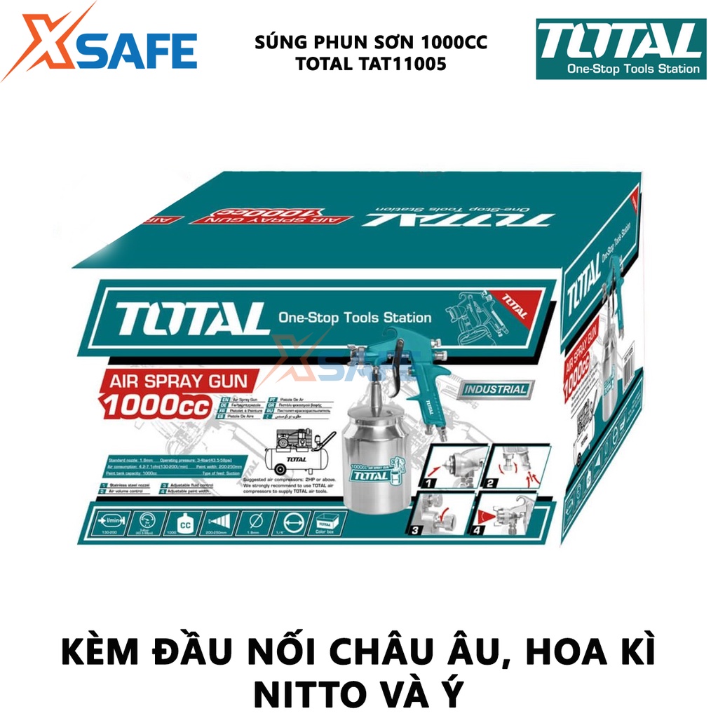 Giới thiệu Súng phun sơn khí nén TOTAL TAT11005, đầu vòi 1.5mm, áp lực 3-4bar, mức tiêu thụ 4.2-7.1cfm - [CHÍNH HÃNG][XSAFE]