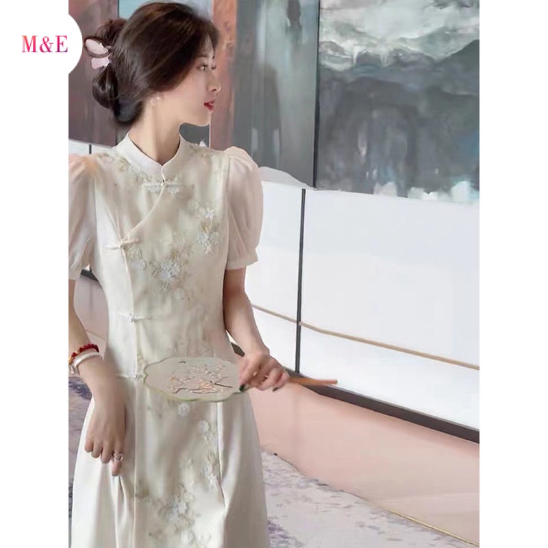 Giới thiệu Sườn Xám Cách Tân Dáng Dài Màu Hồng Trơn Thời Trang Mùa Hè 2023 Phong Cách Trung Hoa Cổ Điển Cho Nữ M & E 2023