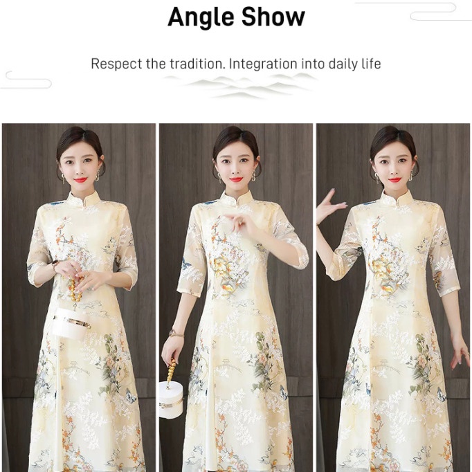 Giới thiệu Sườn Xám Cách Tân Dáng Dài Thiết Kế Mới Xinh Xắn Thời Trang