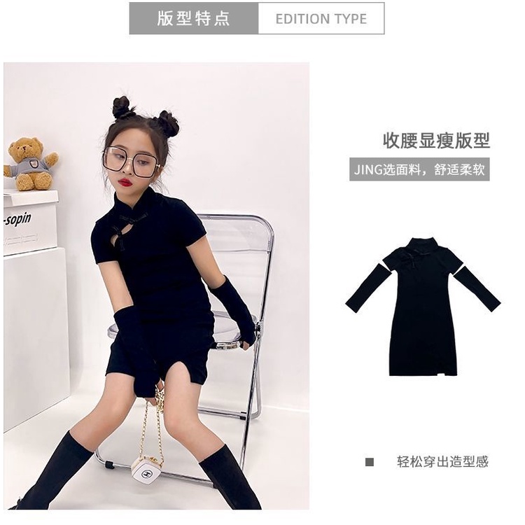 Giới thiệu Sườn Xám Tay Dài Dáng Ôm Xẻ Tà Màu Đen Phong Cách Cổ Điển Thời Trang Mùa Hè 2022 Dành Cho Bạn Gái