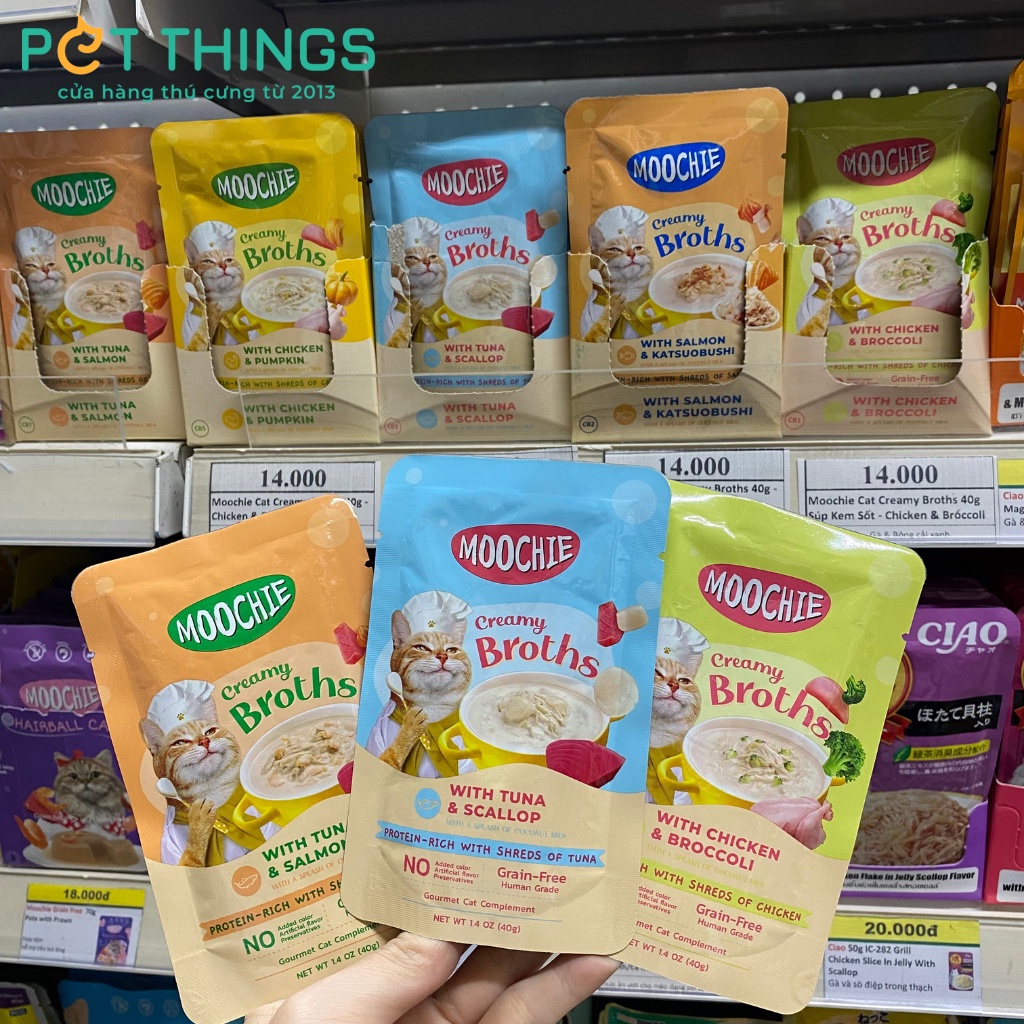 ️🛒 Mua trực tiếp tại 2 địa chỉ shop (mở cửa: 8h-22h) hoặc qua website 24/24: www.petthings.vn 📦 MỌI ĐƠN HÀNG ĐỀU ĐƯỢC CHỊU TRÁCH NHIỆM VẬN CHUYỂN BỞI ĐƠN VỊ VẬN CHUYỂN CỦA SHOPEE 🙏 CẢM ƠN SÚP KEM MOOCHIE CREAMY BROTHS 40G