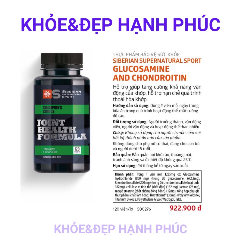 Giới thiệu Supernatural sport Glucosamine and Chondroitin - Ngừa đau khớp Glucosamine and Chondroitin siberian – 120 viên
