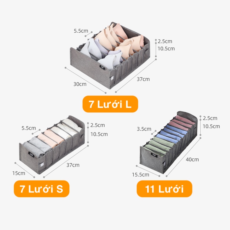 SUPO DEPOT - Túi vải dày dặn xếp gọn chia 7/11 ngăn đựng nội y/ tất cho ngăn kéo tủ quần áoGiá CGT