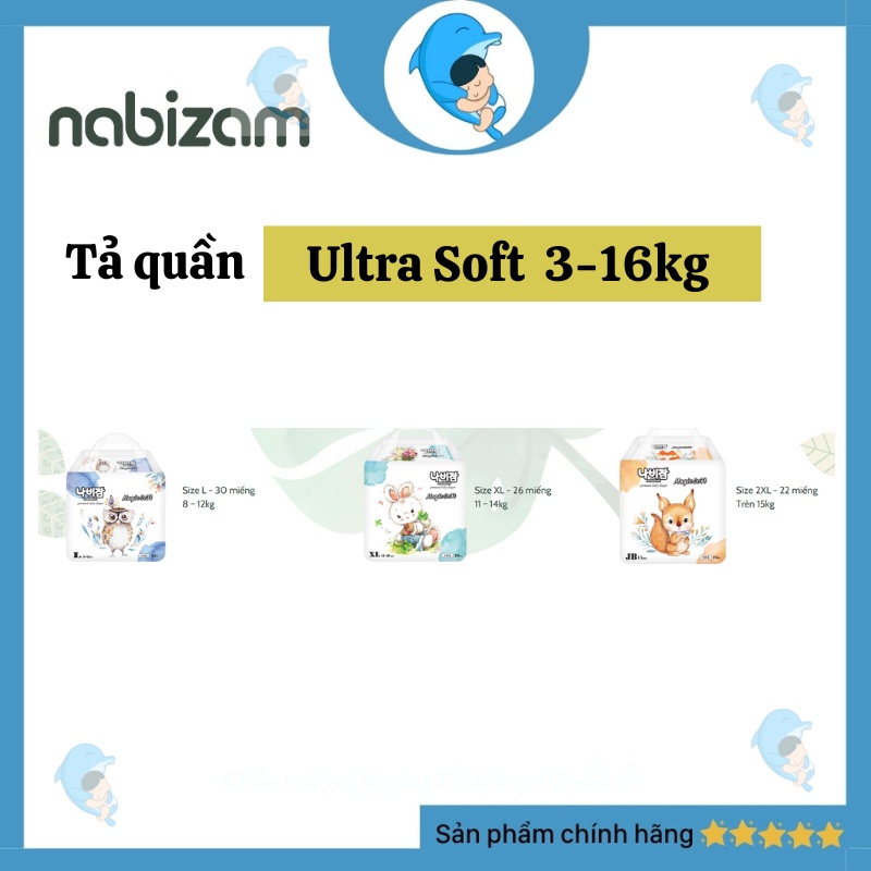 Tã/Bỉm dán quần Nabizam Ultra Thin/ Magic Soft nội địa Hàn đủ size S/M/L/XL/2XL/3XL cho bé 3-20kg