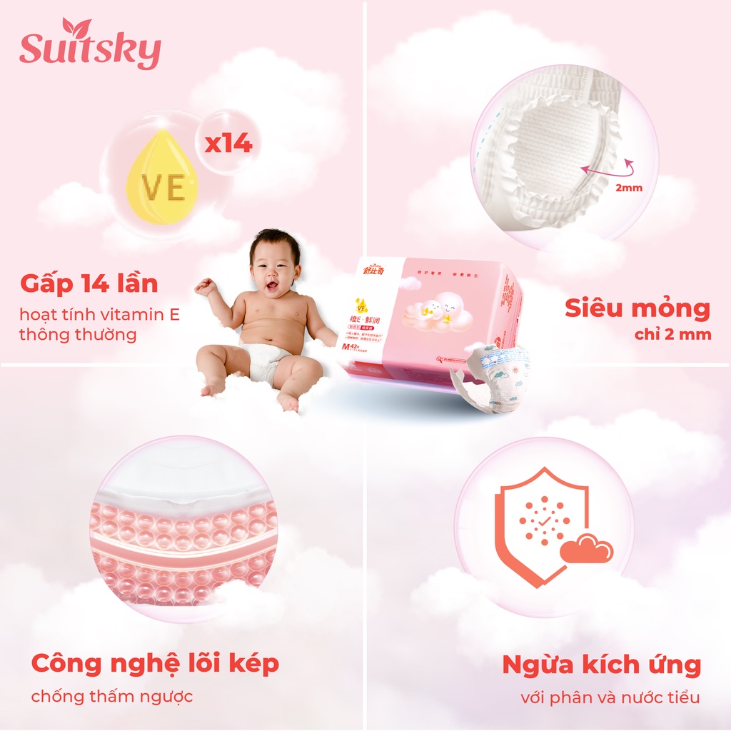 Giới thiệu Tã/Bỉm Quần Cao Cấp Suitsky Có Chứa Vitamin E Mềm Mỏng Siêu Thoáng Khí, Thấm Hút Cực Nhanh