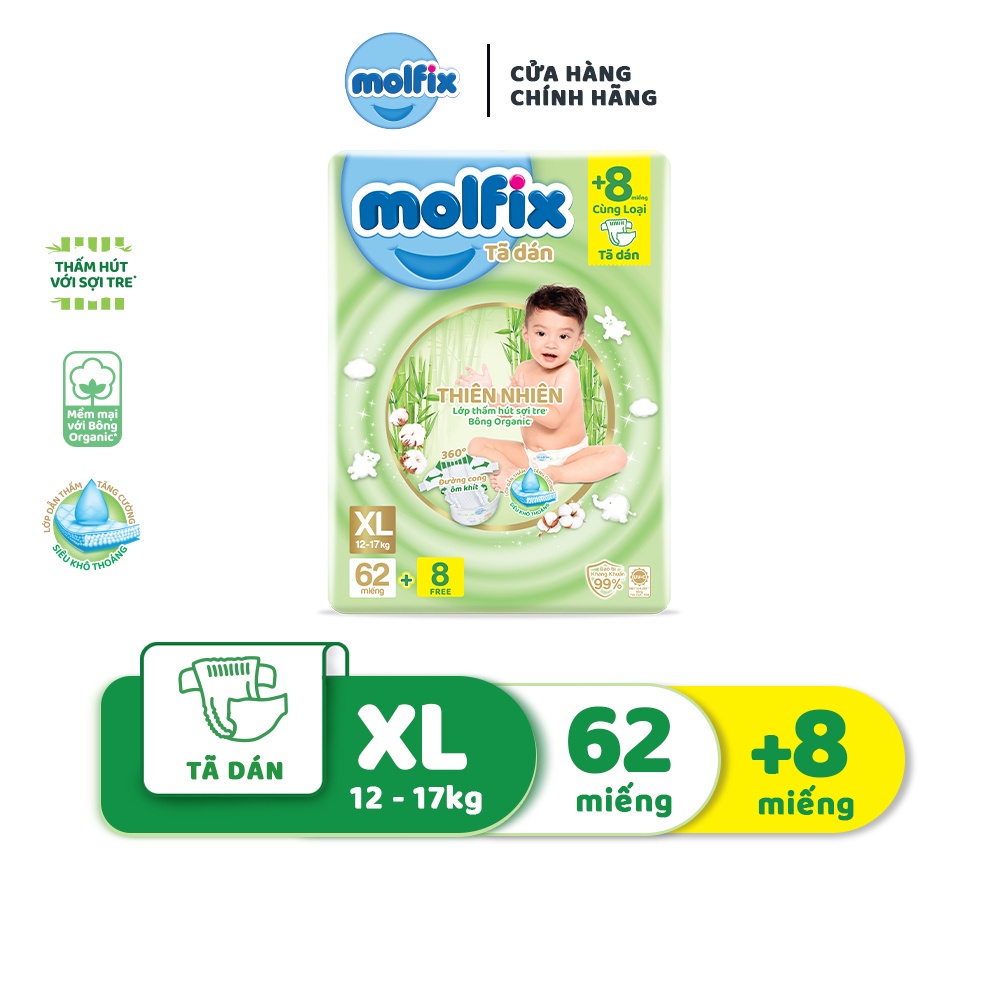 Tã/bỉm dán Molfix Thiên nhiên Super Jumbo S80/M76/L68/XL62/XXL56