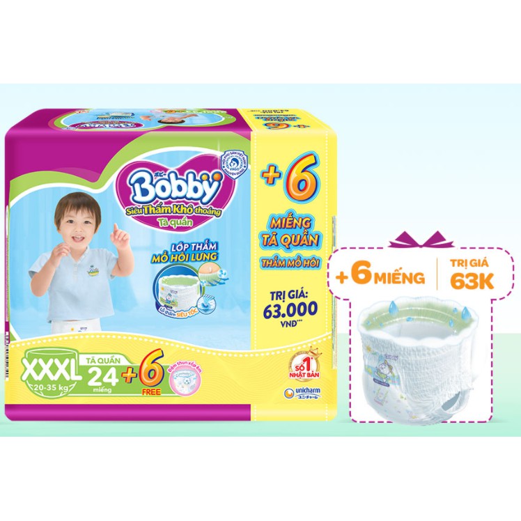 Giới thiệu Tã Quần Bobby XXXL24 MIẾNG [có tặng và không tặng]