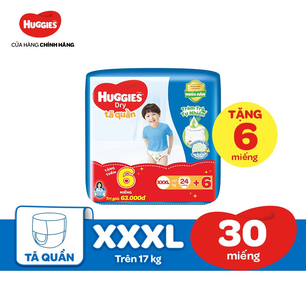 Giới thiệu TÃ Quần Huggies Tràm Trà Tự Nhiên Dry M76/L68/XL60/XXL54/XXXL24(KM) hàng tặng kèm tùy thời điểm khuyến mãi