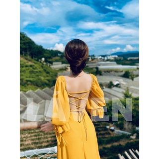 Đầm Tơ Bướm Hở Lưng Có Lót Cho TIểu Thư Đẹp Y Hình UP