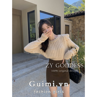 Áo Dệt Kim Crop Top Hàn Quốc Mới Cho Mùa Thu Sớm