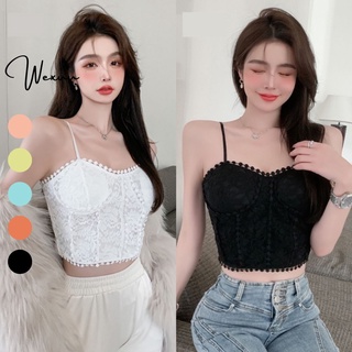 Áo 2 Dây Nữ Ren Hoa Tiểu Thư Đính Hạt Viền Bèo, Chun Sau Dáng Croptop Có Mút Ngực 1202
