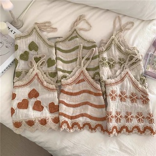 Áo 2 dây sợi móc thêu hoa cúc cực xinh hàng QC