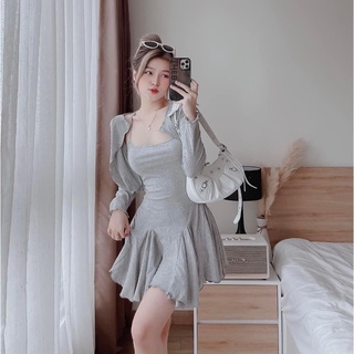 SET 2 món đầm dây phối xoè kèm áo cadigan SE2