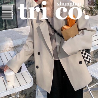 Áo Khoác Blazer Hai Hàng Nút Cài Dáng Rộng Cỡ Nhỏ Màu Sắc Tương Phản Phong Cách Hàn Quốc Thời Trang Xuân Thu 2023