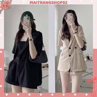 [11.11 Sale Freeship] Set bộ vest ba món,set vest nữ quần đùi áo blazer nữ ngắn tay mix quần short nữ trẻ trung cá tính