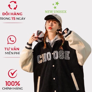 Áo Khoác Bomber Nhung Tăm Gân 2 Lớp Thêu Chữ CHOOSE ❤ Áo BomBer Bóng Chày Nam Nữ Phong Cách Hàn Quốc