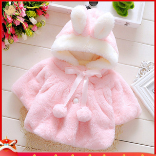 Áo choàng tai thỏ phối lông thú đáng yêu dành cho bé gái