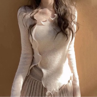 Áo Len Nữ Dài Tay Cổ Chữ V Xẻ Tà Thời Trang