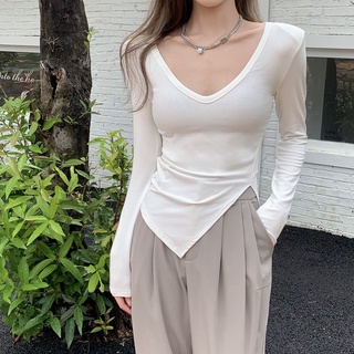 Áo Thun Tay Dài Ôm Dáng Xẻ Tà Thời Trang Mùa Hè Cho Nữ