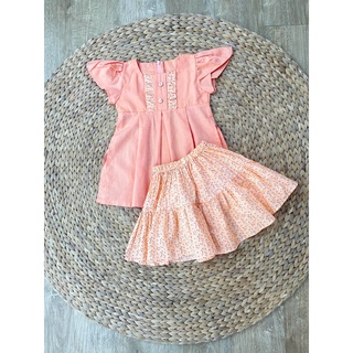 Áo dài cách tân bé gái kèm mấn, vải gấm hoa tay bèo kèm chân váy xòe XHN1114