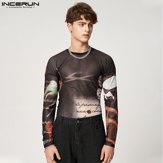 INCERUN Áo Sơ Mi Tay Dài Xuyên Thấu Phong Cách Gothic Thời Trang Dự Tiệc Cho Nam