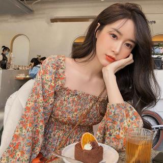 Áo Chiffon Tay Dài In Hoa Phong Cách Retro Cho Nữ
