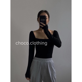 áo thun tay dài cổ vuông dáng ôm chất thun gân mịn đẹp