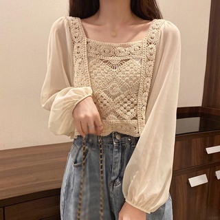 Áo Kiểu Tay Dài Thiết Kế Cổ Vuông Nữ Tính