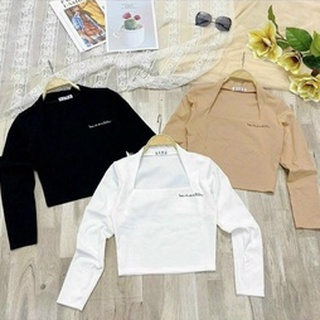 áo tay dài ôm body cổ vuông thêu chữ nhí l