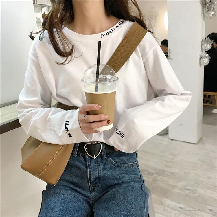 SUXI Áo thun trắng tay dài kiểu Hàn Quốc thời trang cho nữ