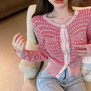 [Ảnh thật/Video]Áo cadigan mongtogi Hồng dài tay đính ngọc ngắn tay Áo len Hàn Quốc sang chảnh