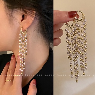 Bông Tai Tua Rua Dài Đính Ngọc Trai Thời Trang Cho Nữ