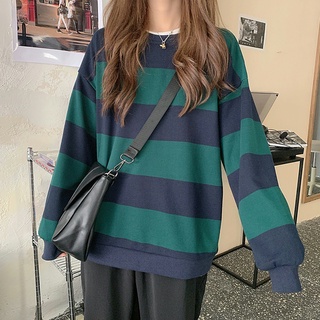 Áo Len Nữ Dài Tay Cổ Tròn Sọc Ngang Thời Trang Hàn Mới