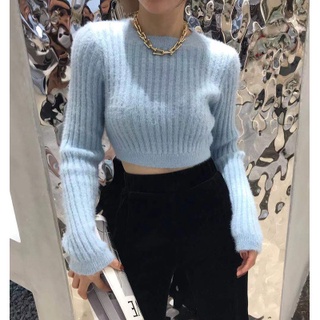 Áo Croptop Dệt Kim Tay Dài Cổ Tròn Thời Trang Mùa Hè Cho Nữ