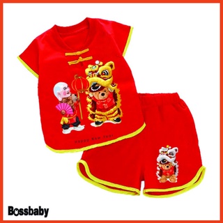 ( Khuyến mãi ) Combo 2 Bộ quần áo tết đồ tết cho bé nút tàu tết xuân hình con con gấu múa lân cho bé từ 6kg-29kg.NT03. .