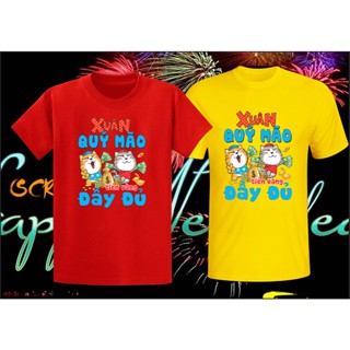 áo thun tết 2023 in mèo tết sum vầy dễ thương coton co giản 4 chiều thoải mái