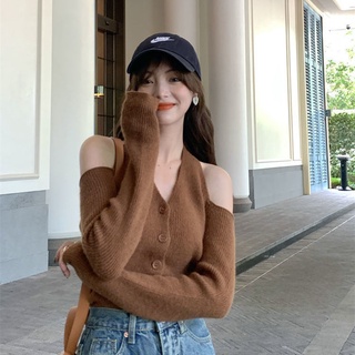 Áo dệt kim tay dài cổ chữ V thiết kế trễ vai quyến rũ COZOK