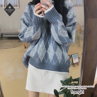 Áo len nữ dài tay cổ tròn form dài rộng thời trang Hàn